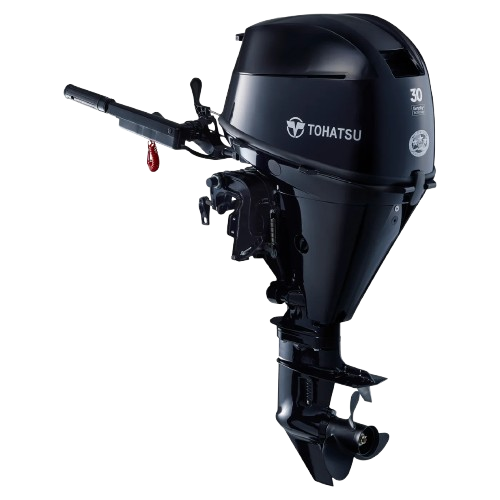 The Tohatsu 30 HP EFI outboard motor, Model #MFS30DEFL with the 20 inch long shaft, offers the lightest weight in its class, improved reliability, and the proven performance to drive a wide variety of boat types: Inflatable, RIB, Aluminum, FRP and/or Pontoon. With a redesigned tiller handle that includes a stop switch, a four-step variable idle control button from 750 to 1050 RPM and many more optional features, the Tohatsu 30HP MFS30DEFL puts power and versatility right at your fingertips.